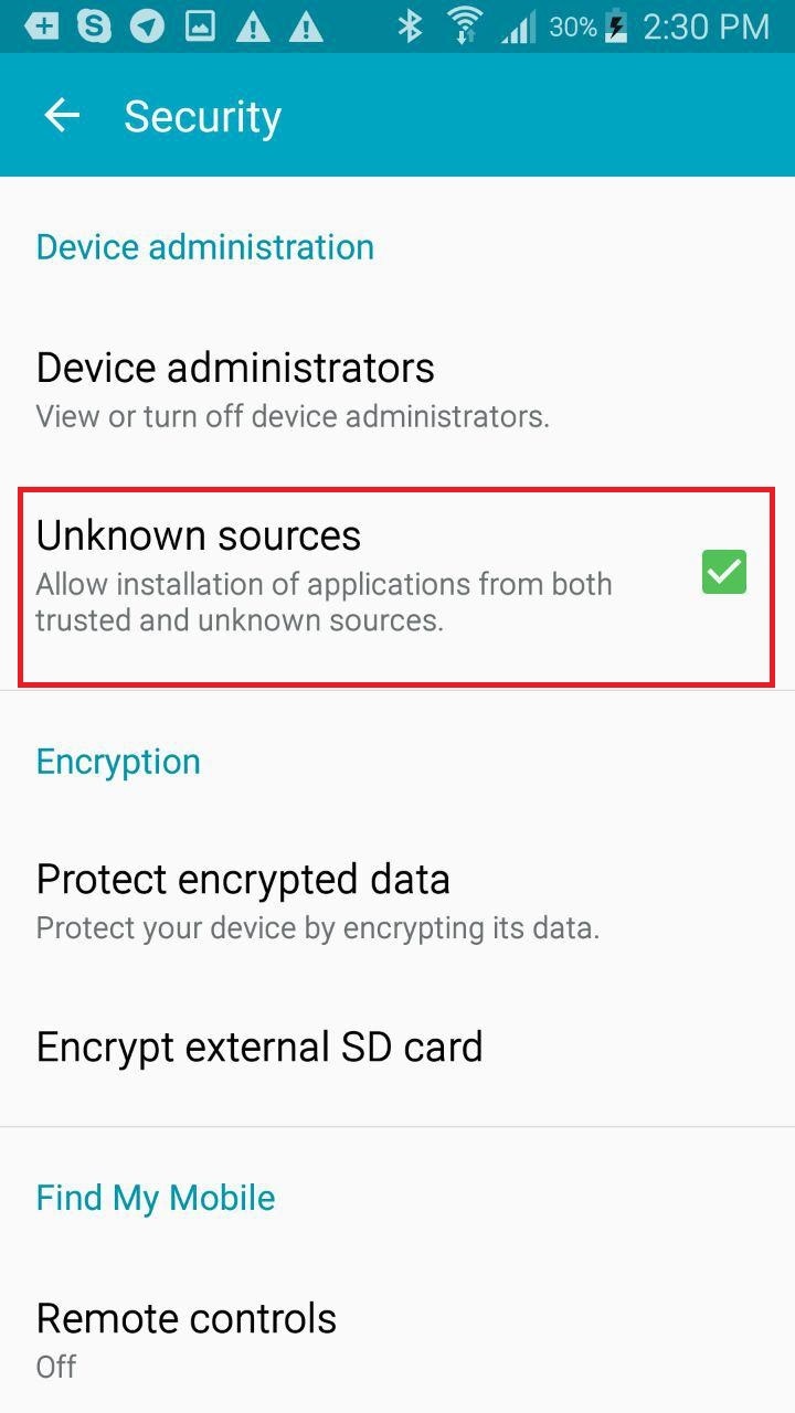 Allow installation of applications from both trusted and unknown sources on mobile device