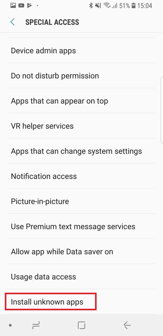 Go to the "Security" section and check the "Unknown sources" checkbox